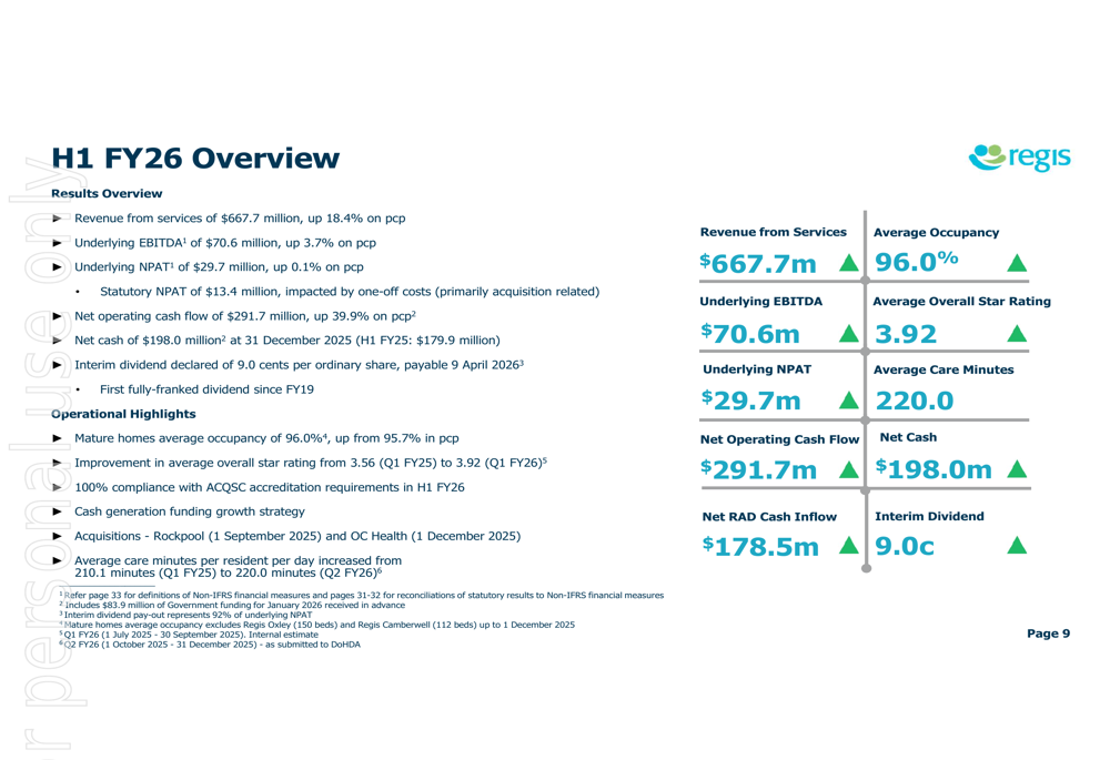 Regis H1 FY26 slides: revenue surges 18% as acquisitions drive growth